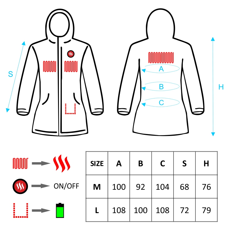 • Het verwarmingselement bevindt zich op de borst en op de schouders en zorgt voor een gelijkmatige warmteverdeling.